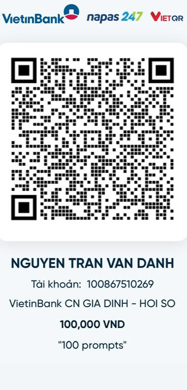 BƯỚC 1: Chọn gói (20/50/100 prompts)BƯỚC 2: Quét QR tương ứngBƯỚC 3: Gửi xác nhận Zalo + ghi rõ ngành nghề + số lượng đã mua